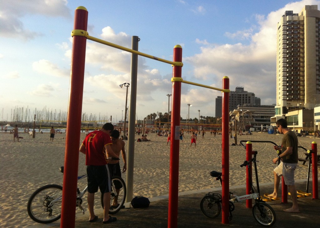 ככל שעברתי להתאמן יותר ויותר במשקל גוף, הלכה וגברה הסלידה שלי מחדר הכושר האופנתי שלי. התחלתי לצאת יותר לאוויר הפתוח, וגילתי כי לשם שינוי כי בנושא הזה העירייה בצד שלי. היום רוב הרשויות המקומיות בארץ מקימות ומתחזקות מתקנים של ספורט, פתוחים לקהל הרחב במקומות "אסטרטגים" בפארקים השונים ובחופי הים. (לדוגמא, הנה הרשימה המלאה של המתקנים הממוקמים ברחבי תל אביב) המתקנים הללו כוללים מכשירים המאפשרים כל סוג של אימון וכמעט לכל גיל, מאימונים קלים ועד מתקדמים.